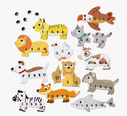 ¡12 rompecabezas de animales para aprender a leer y escribir tus primeras palabras!