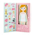 Todas las piezas son de madera y son magnéticas. En la fabulosa caja de presentación también se incluye un fondo desplegable con una escena de dormitorio en un lado y el exterior en el reverso.