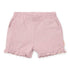 ¡Entra al verano con magia púrpura! Estos pantalones cortos de color lila alegrarán tu día con su hermoso color lila y su encantador diseño floral en relieve. Fabricadas con una mezcla de algodón orgánico y viscosa, garantizan comodidad y transpirabilidad. Los pantalones cortos tienen bolsillos laterales y cinturilla elástica. El dobladillo está adornado con un delicado volante, que añade un detalle divertido y femenino que complementa el encantador tema.