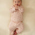 La refinada estructura Pointelle del tejido, en un bonito tono rosa claro, está decorada con un encantador estampado de pequeñas flores. El diseño de la funda garantiza que sea fácil de cambiar y quitar, y un pequeño lazo adjunto agrega un toque final encantador. Y