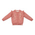 Este bonito cárdigan te transportará a los prados floridos del campo. El color rosa intenso está decorado con grandes bordados florales en el pecho y volantes en los hombros. Tiene cogollos que parecen madera, incluido un vistoso cogollo con forma de flor. Confeccionado con suave algodón orgánico, este cómodo cárdigan es perfecto como capa adicional de abrigo en los días más fríos.