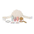 El cinturón tiene una bolsa de cosméticos en forma de una bonita concha y contiene: 1 esmalte de uñas, 1 lápiz labial, 1 colorete, 1 pincel para colorete, 1 spray fijador, 1 espejo y 2 paletas de sombras de ojos.