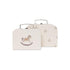 Mantén todos tus juguetes ordenados con esta decorativa bolsa de cartón con cierre metálico. Este juego de 2 contiene 1 maleta más grande con estampado de caballos y 1 maleta más pequeña con estampado de caballos de la colección Nostalgic Ride.
