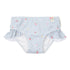 Diseñado con divertidos detalles para hacer cada día de playa o aventura en la piscina aún más especial, tiene finas rayas azules y blancas, decoradas con pequeñas rosas de flores.