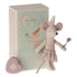 Por la noche, el Ratoncito Pérez espolvorea polvo de hadas, recoge los dientes, trae una pequeña sorpresa y desea dulces sueños.