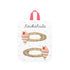 Dos conos de helado con forma de remolino cubiertos de cerezas se colocan encima de dos broches de presión envueltos en una cinta dorada.