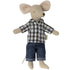 Una prenda clásica de Maileg, el papá ratón con camisa a cuadros y vaqueros.