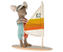 Este ratoncito está listo para pasar un día en la playa. Lleva puesto un traje de surf y su tabla.