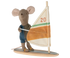 Lleva un traje de baño y lleva su tabla de surf, ya que prefiere pasar el tiempo en el mar.
