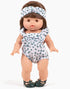 Conjunto de mono y diadema retro, en algodón, con lunares grises y bolsa para guardarlos.