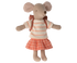La hermana mayor del ratón está lista para un día de colegio, con su mochila a la espalda. Tiene imanes en las manos para que puedas sujetar los mangos del triciclo y hacer un viaje rápido.