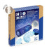 O conjunto inclui tudo o que precisas para criar o teu próprio projetor de estrelas e descobrir duas famílias de constelações: os signos do zodíaco e as constelações de animais.